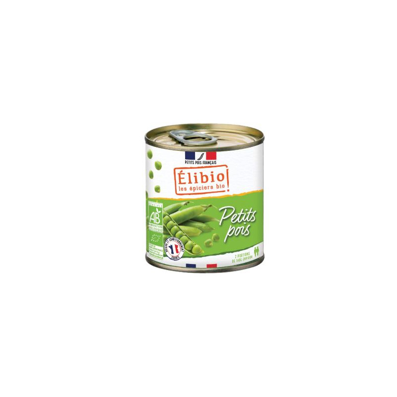 Petits pois issus de l'agriculture biologique en boîte, poids net 400 g et poids net égoutté 280 g . A manger chaud, en les réchauffant à feu doux avec une noix de beurre ou une huile végétale pour accompagner vos plats. Ou froid, a incorporé à des salades.