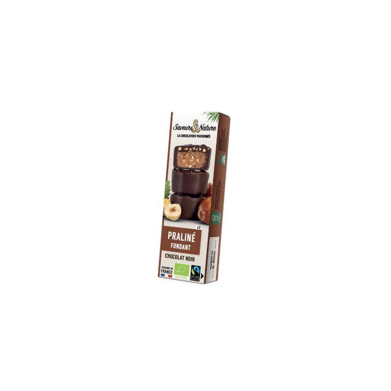 Bouchées rochers praliné noisette enrobés de chocolat noir 70% de cacao.