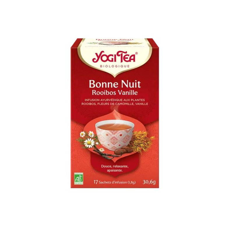 Rooibos*, fleurs de camomille*, écorces de cacao*, réglisse*, extrait de vanille*, cannelle*, cardamome*, extrait de mélisse*, muscade*, gingembre*, clous de girofle*, poivre noir*. *agriculture biologique